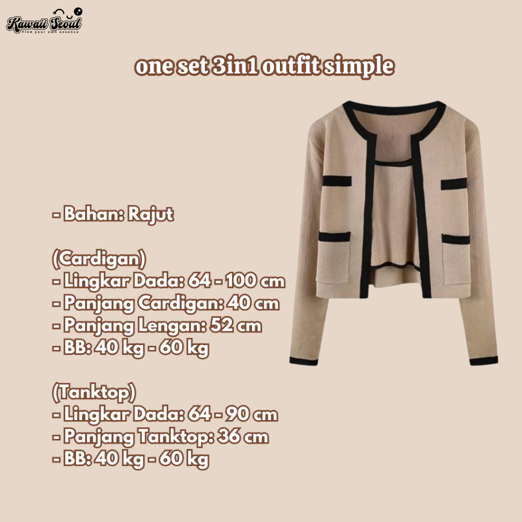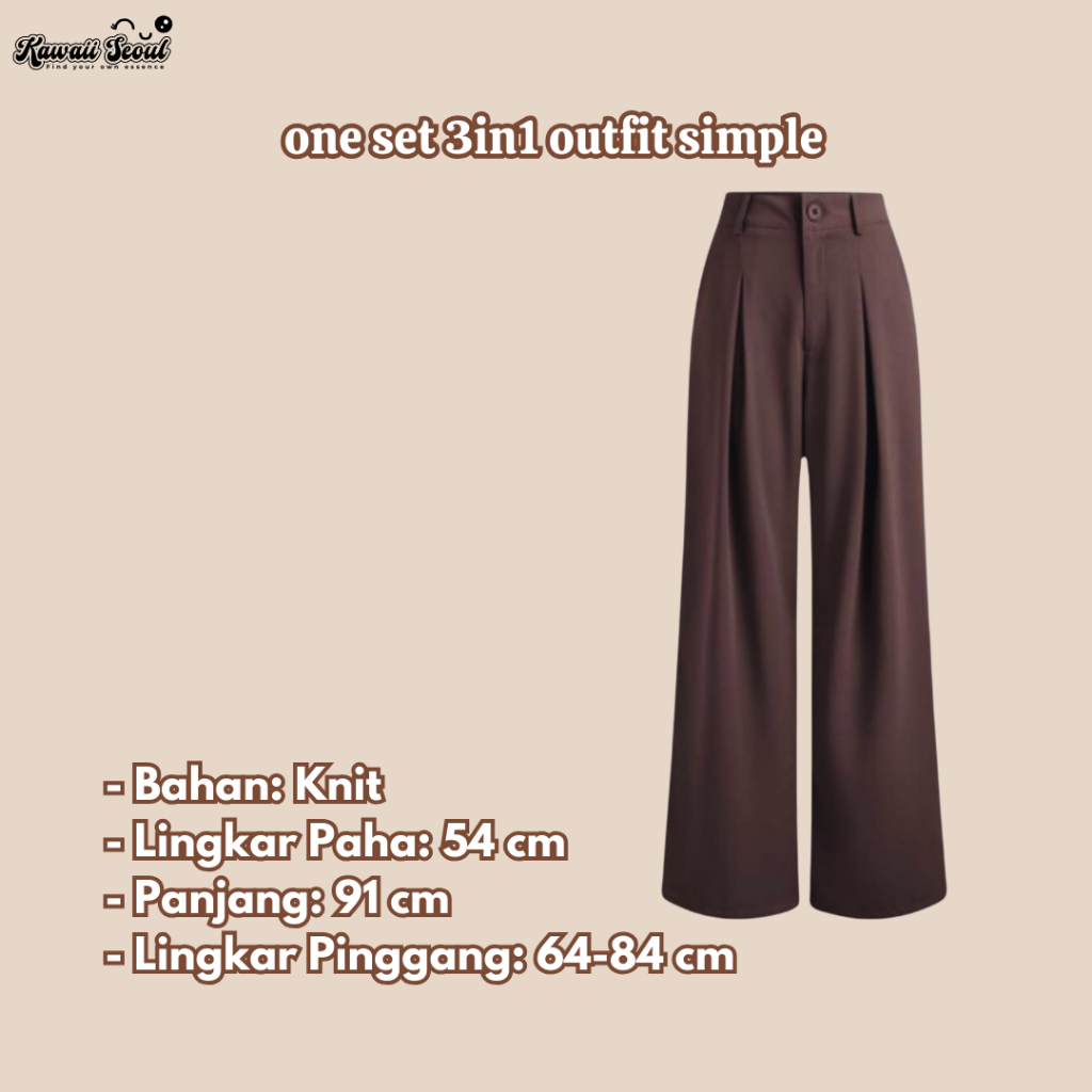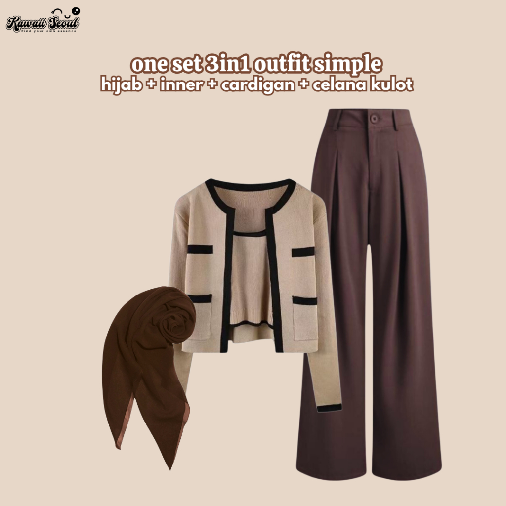 One Set 3in1 Inner Cardigan Korean Style Celana Kulot Knit Hijab Segi Empat Setelan Wanita 218