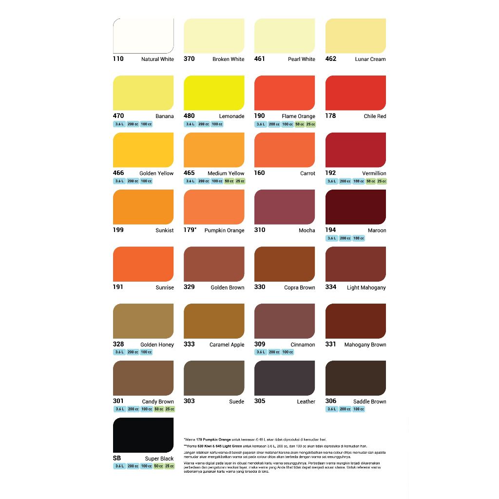 301 Candy Brown, 303 Suede, 305 Leather, 306 Saddle Brown, 309 Cinnamon, 310 Mocha, 328 Golden Honey, 329 Golden Brown, 330 Copra Brown, 331 Mahogany Brown