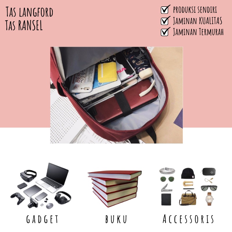 Tas Ransel - Backpack Sekolah Punggung Bahu Remaja Dewasa Model Korea Terbaru Kekinian Pria Wanita 1