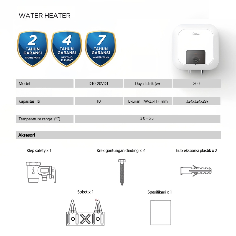 [Desain Baru] Midea 10L / 15L 200W Pemanas Air Water Heater D10-02VD1/D15-02VD1