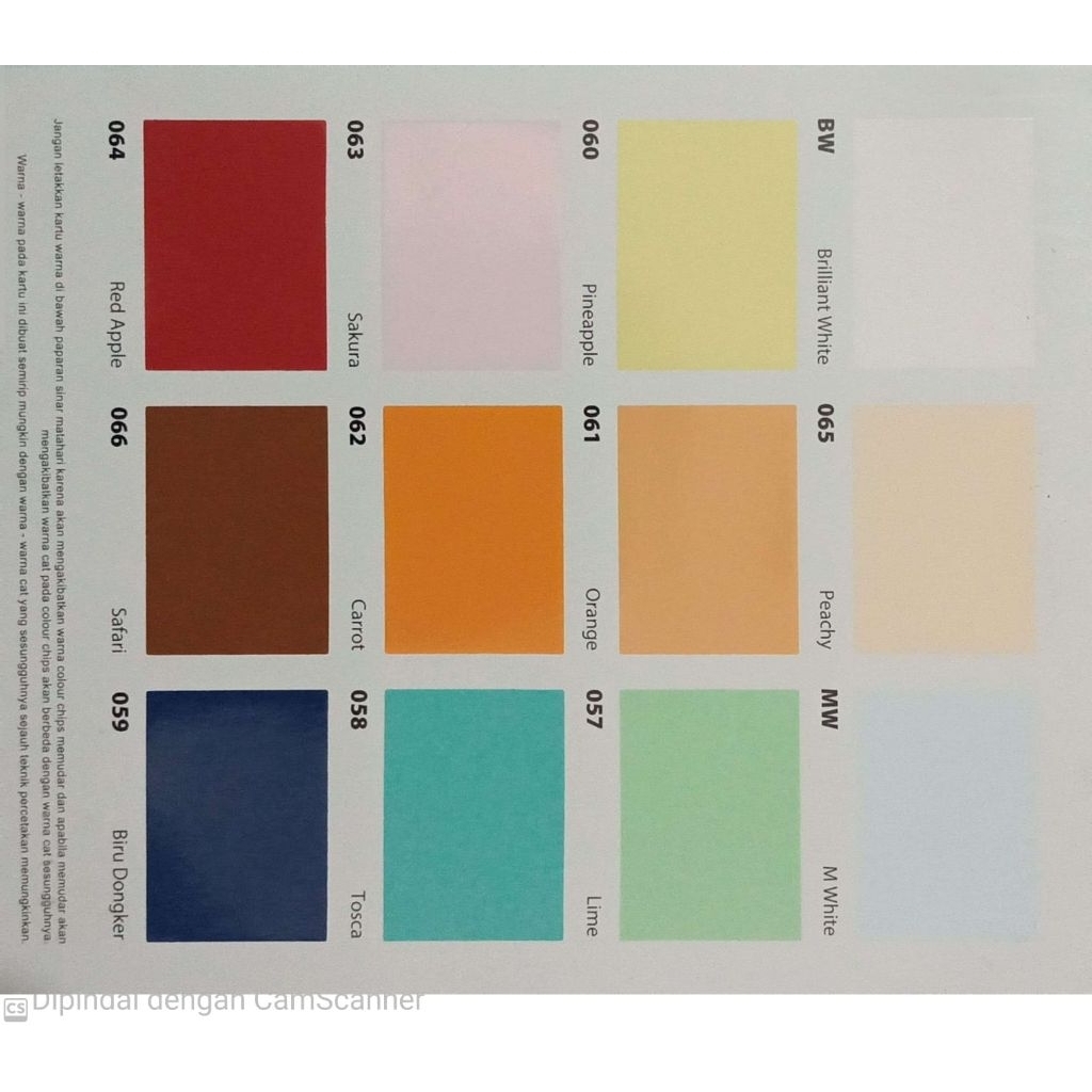 001 Transparan, 017 Kuning, 025 Banana, 019 Papaya, 029 Strawberry, 036 Biru Laut, 004 Biru, 022 Biru Cerah, 007 Merah, 006 Coklat