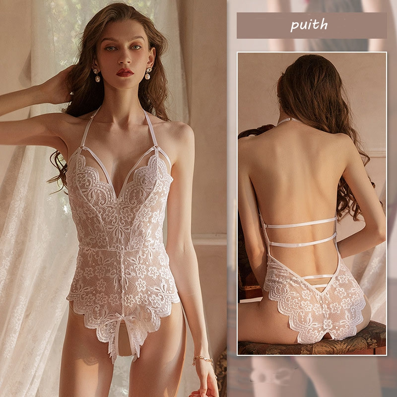 (Ready Stock) Lingerie Seksi One-piece Open transparan celana ketat Babydoll Busur besar A522