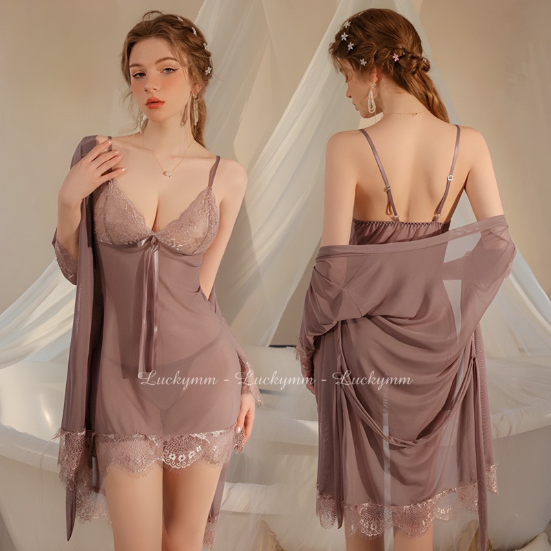 Satu Set Sexy Lingerie Kimono Transparan Baju Tidur sexy Wanita / sleepwear wanita 022