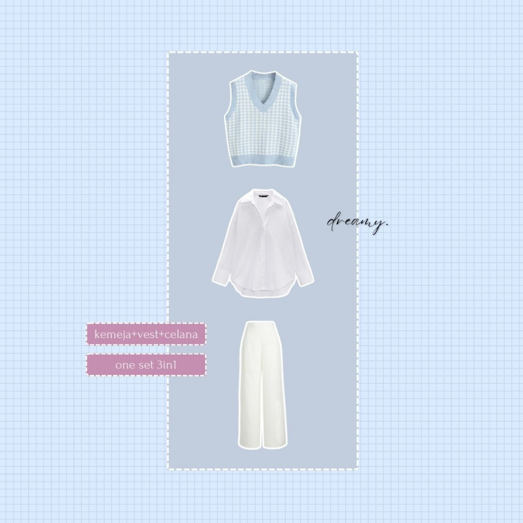 Alina Set 48 - 3in1 Ocean Blue One Set Korean Style, fit Korea, fit Wanita, Ullzang, setelan korea fit ulzzang
