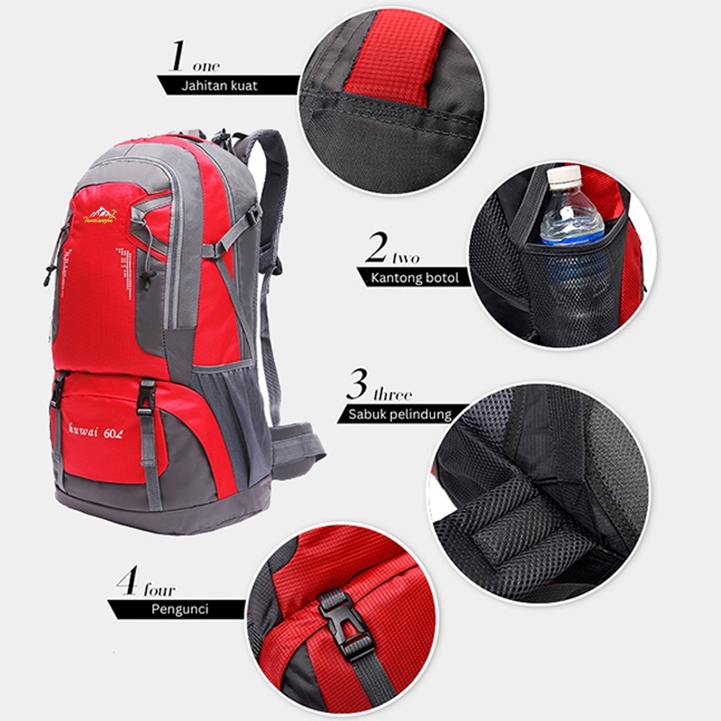 LH51 Tas Ransel Gunung 60L Kapasitas Besar Camping Carrier Backpack Jumbo Travel Hiking 116 TKM