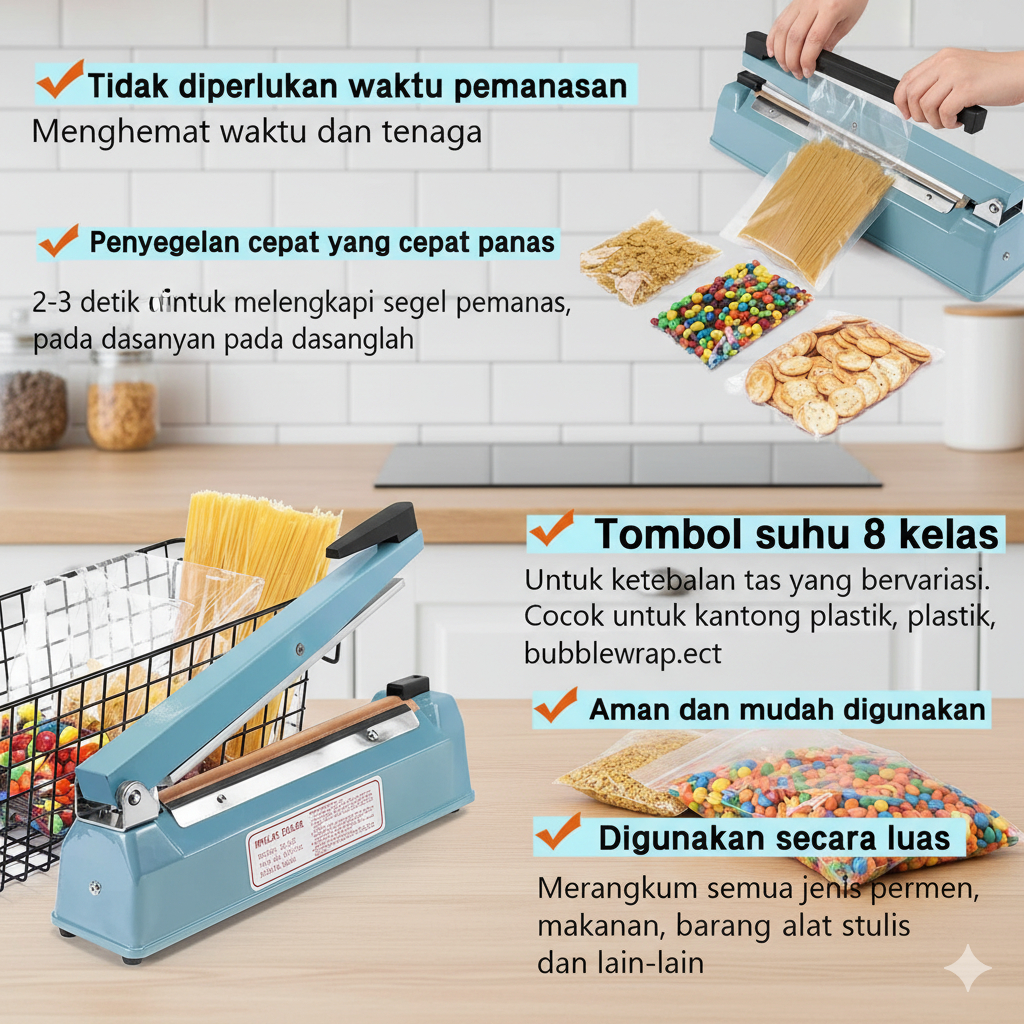 Impulse Sealer Alat Pres Perekat Plastik 20-30cm Pres Kemasan Plastik Snack Kue Krupuk Makanan