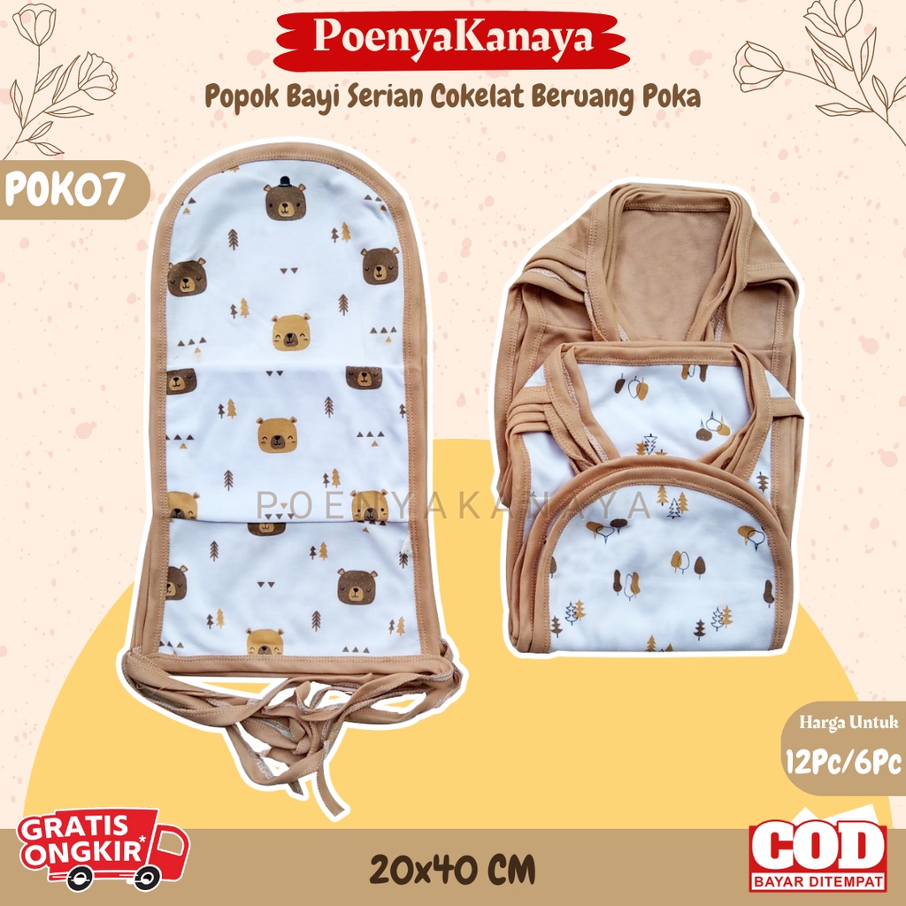 1Lusin/6pc Popok Bayi Seri COKELAT BERUANG POKA SNI Popok Kain Tali Katun POK07