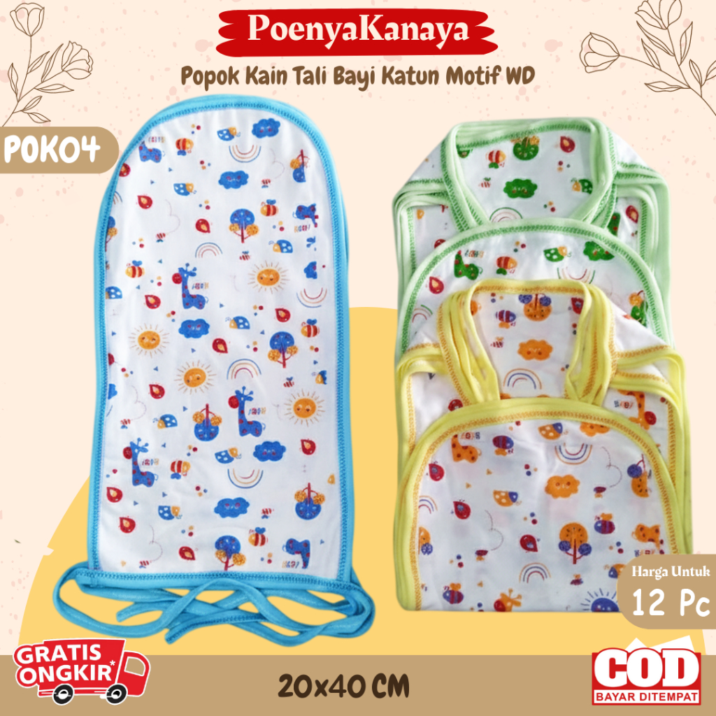1lusin Celana Popok Kain Tali Bayi Katun Motif Div POK04