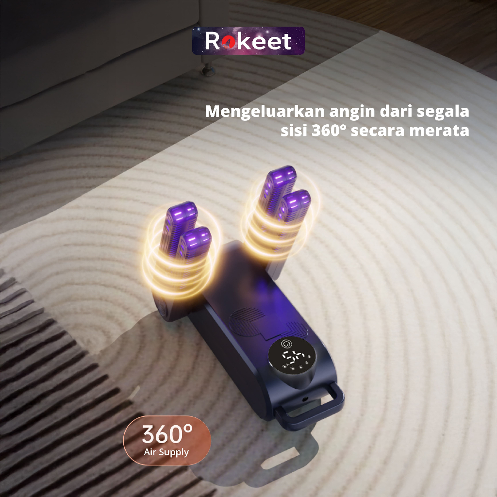 Rokeet Pengering Sepatu & Kaos Kaki 5 Mode Dengan Sinar UV Antibakteri Dapat Membunuh Kuman Pengering Cepat Quad-Core Hi