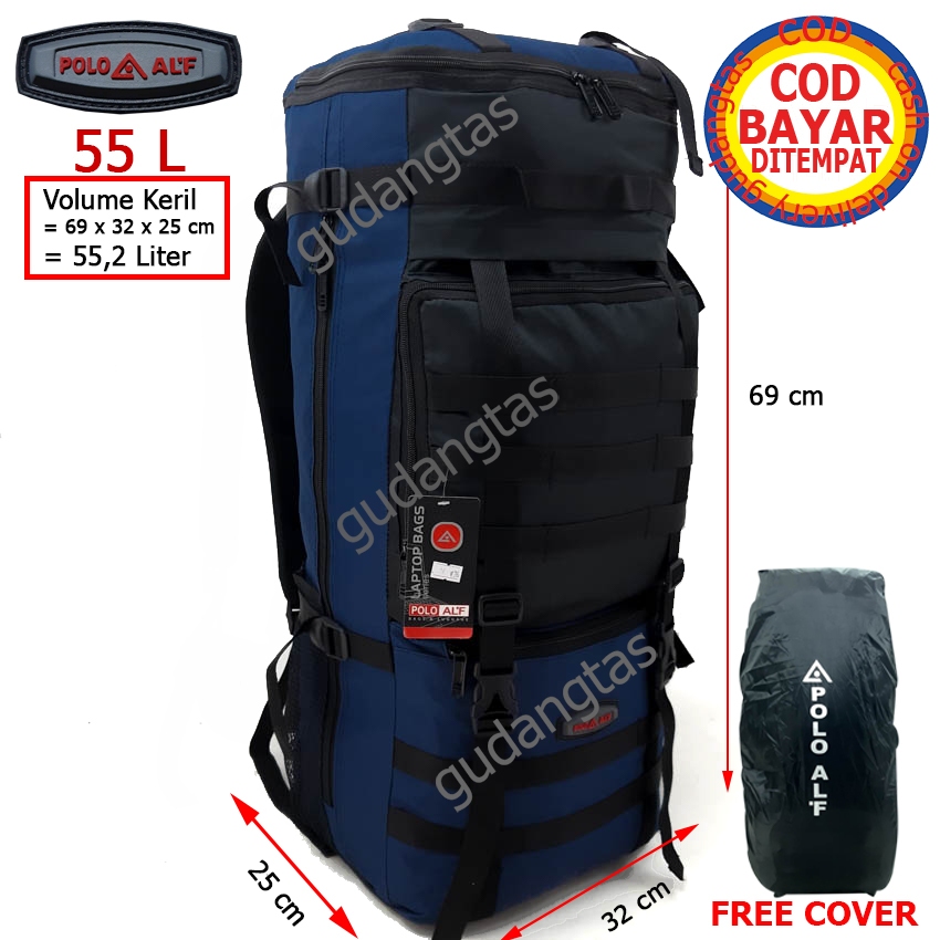POLO ALF Tas Keril Gunung 02699 Backpack Muncak Military Ransel Pria Outdoor Camping Hiking 55L