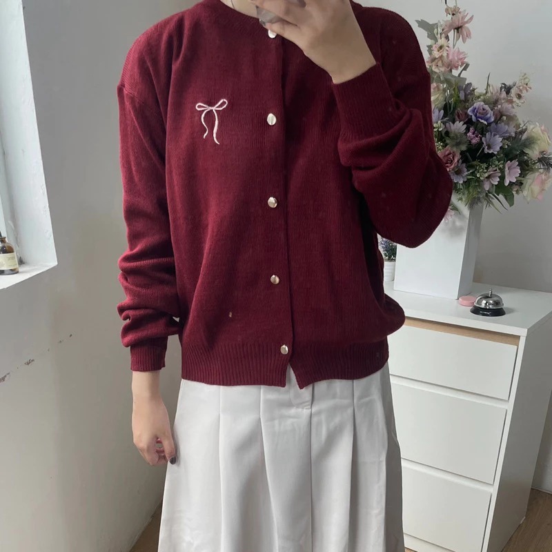 Cardigan Rajut Naomi Pita Korean Style - Cardigan Pita Polos - Cardigan Ribbon Coquette