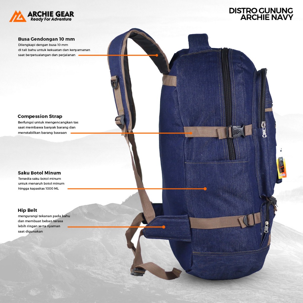 ARCHIE GEAR - Tas Carier Keril Gunung Gendong Mendaki Backpack Pria Camping Hiking Outdoor Travel Traveling Pulkam Pakai
