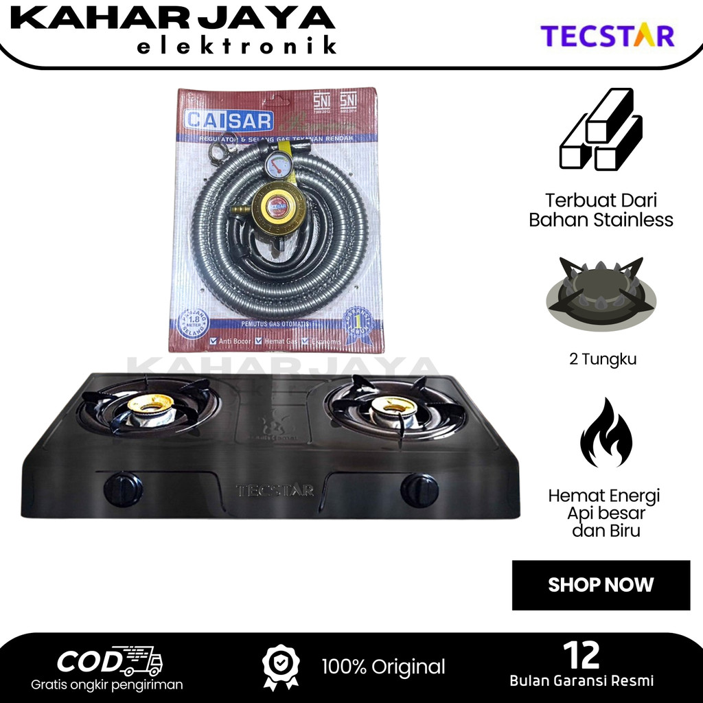 [BISA ] TECSTAR KOMPOR STAINLESS STEEL HITAM PAKET + SELANG + REGULATOR (2 TUNGKU) GARANSI RESMI