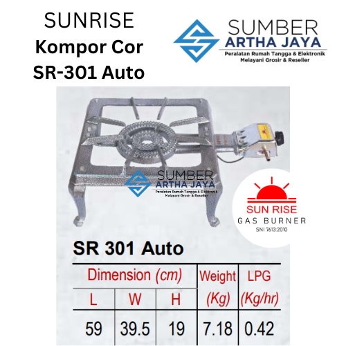 SUNRISE Kompor Besi Cor / Kompor Api Seribu 1 Tungku SR-301 AUTO Tekanan Rendah