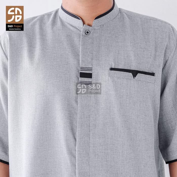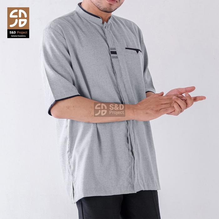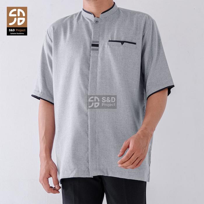 S&D Project Baju Koko Muslim Bahan Madinah Warna Abu Muda Jumbo M-4Xl Untuk Pria Dewasa Lengan Pendek - Abu Muda, M