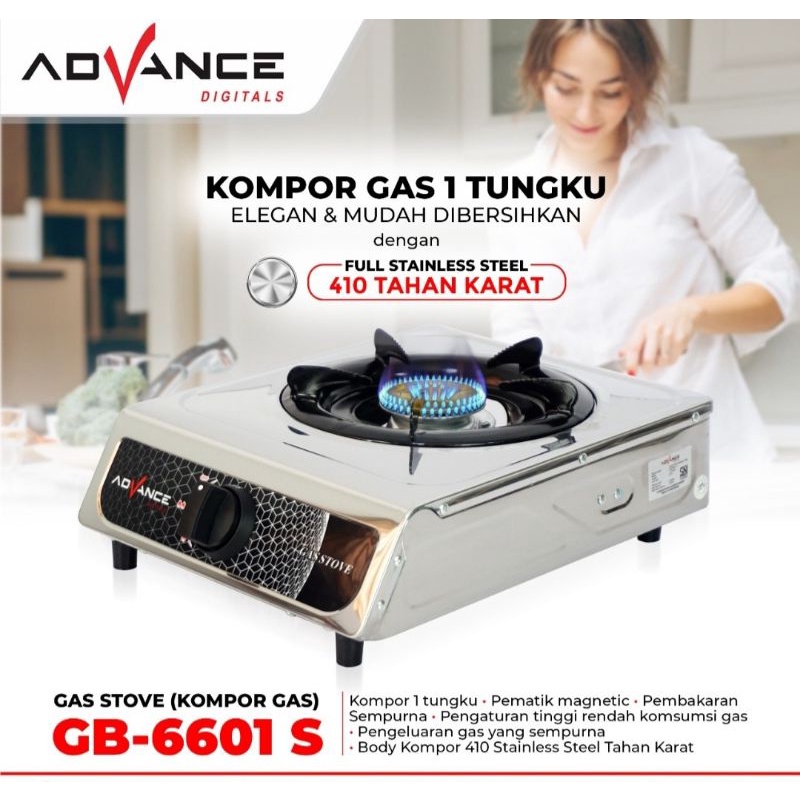 ADVANCE KOMPOR GAS 1 TUNGKU STAINLESS STEEL GB-6601S