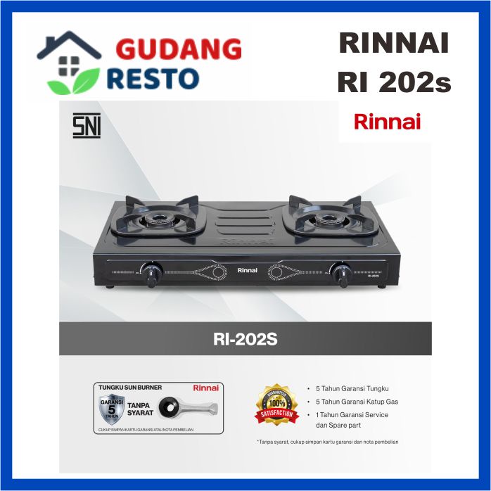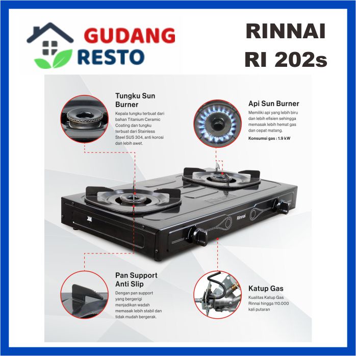 RINNAI RI-202s KOMPOR GAS / LPG 2 TUNGKU / MATA TEFLON RI202s / RI 202 SUN BURNER