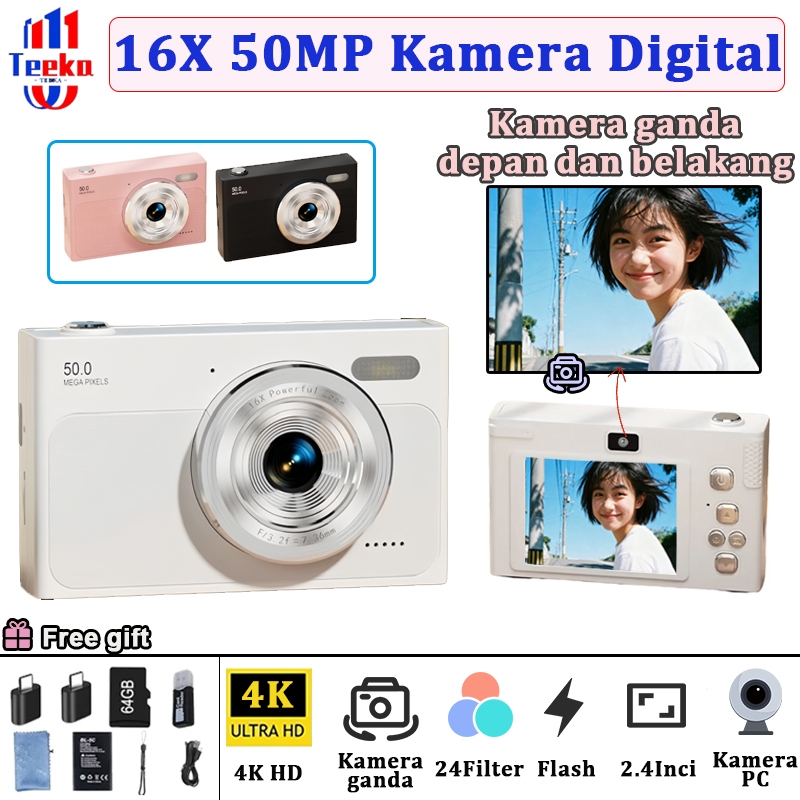 Kamera Digital 50MP 16X Digital Zoom Digicam Kamera Pocket 4K Kamera / Camera Saku Model Retro Putih Biru