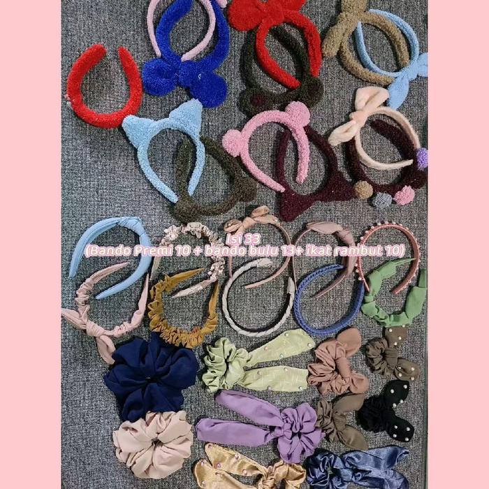 Paket Usaha 1Kg Bando Ikat Rambut Wanita Random Model Wanita Free Plastik Dan Free Bonus - Isi 40 Bando Premi Full