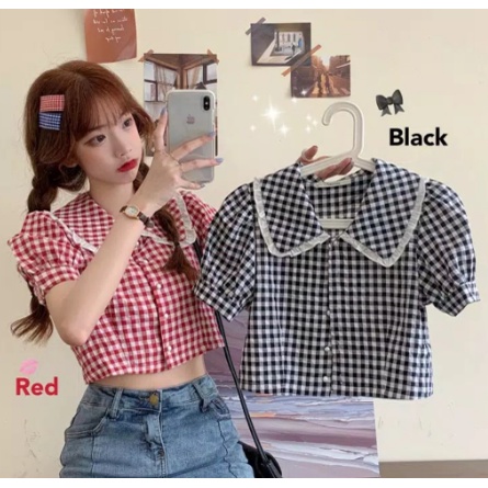 Korean Square Collar Crop Top 1214/baju atasan wanita terbaru(XS-XL)