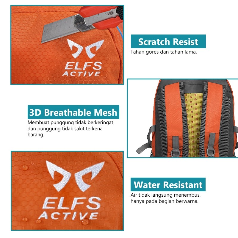 ELFS ACTIVE Tas Gunung Carrier Ransel 30L Tenteng Water Resistant Hiking Bag 3D Mesh FREE RAINCOVER