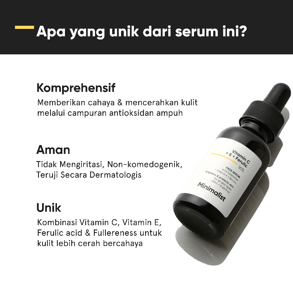 Minimalist 16 PERSEN Vitamin C Serum | Serum Vit C dengan Vitamin E & Ferulic Acid untuk Melindungi & Mencerahkan Kulit | Brig