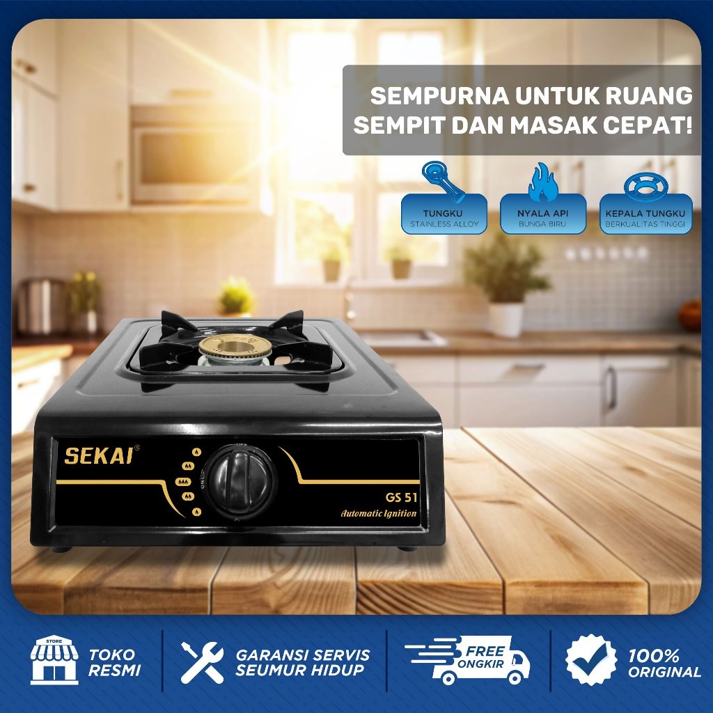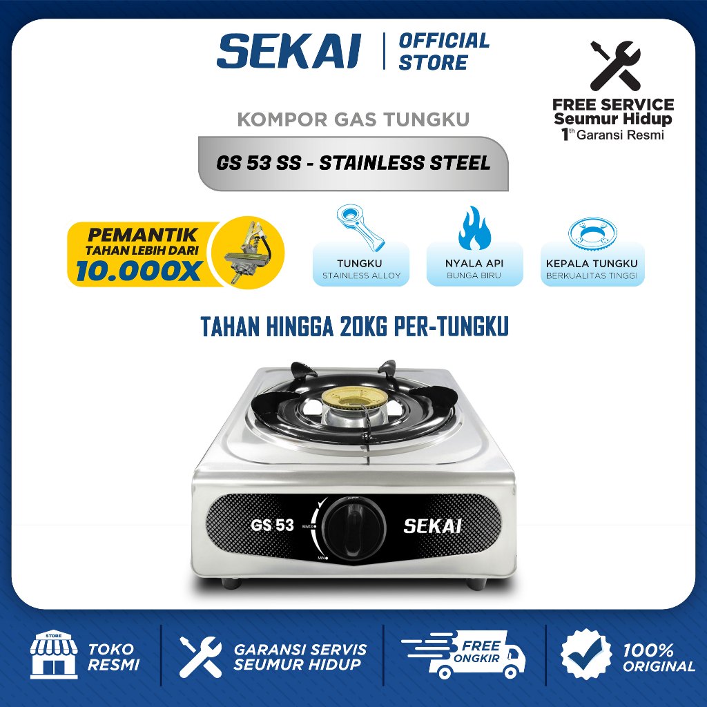 SEKAI Kompor Gas 1 Tungku Stainless Steel - GS 51 & GS 53