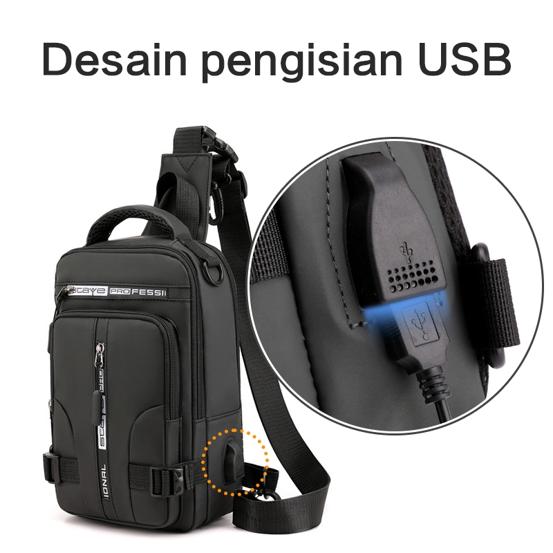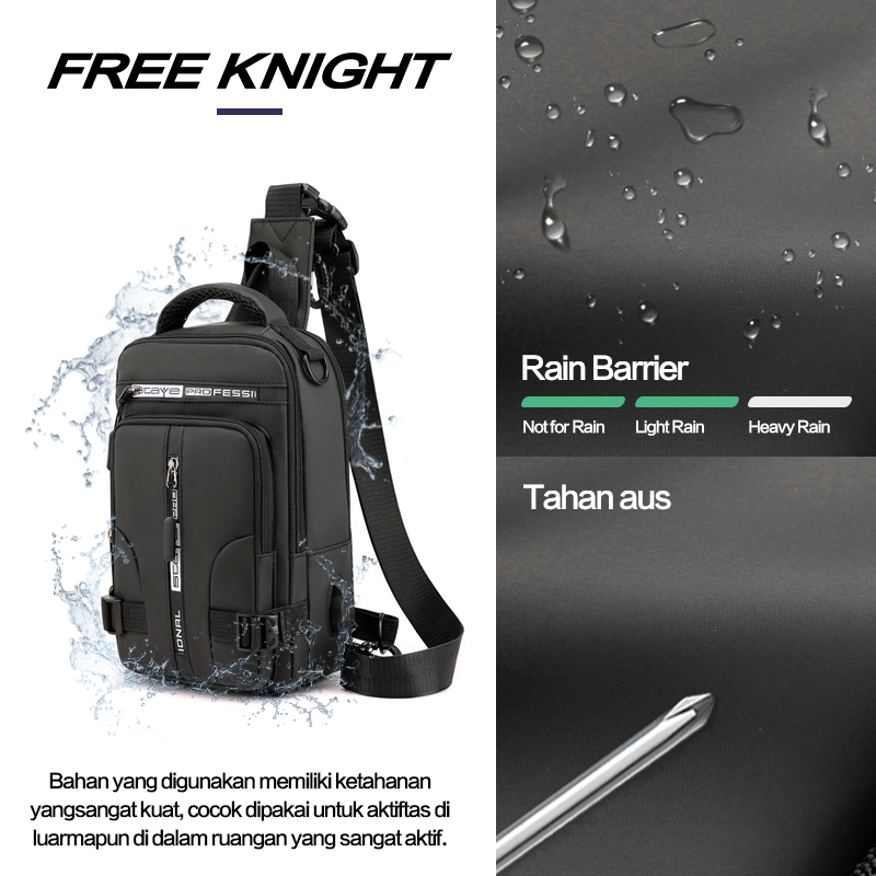 Freeknight Tas Selempang Pria Keren Multifungsi Sport USB Charge Fashion Slempang Waterproof TS713