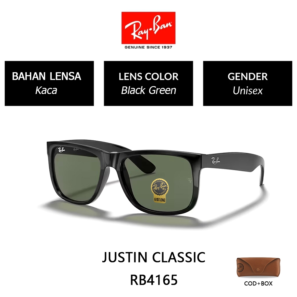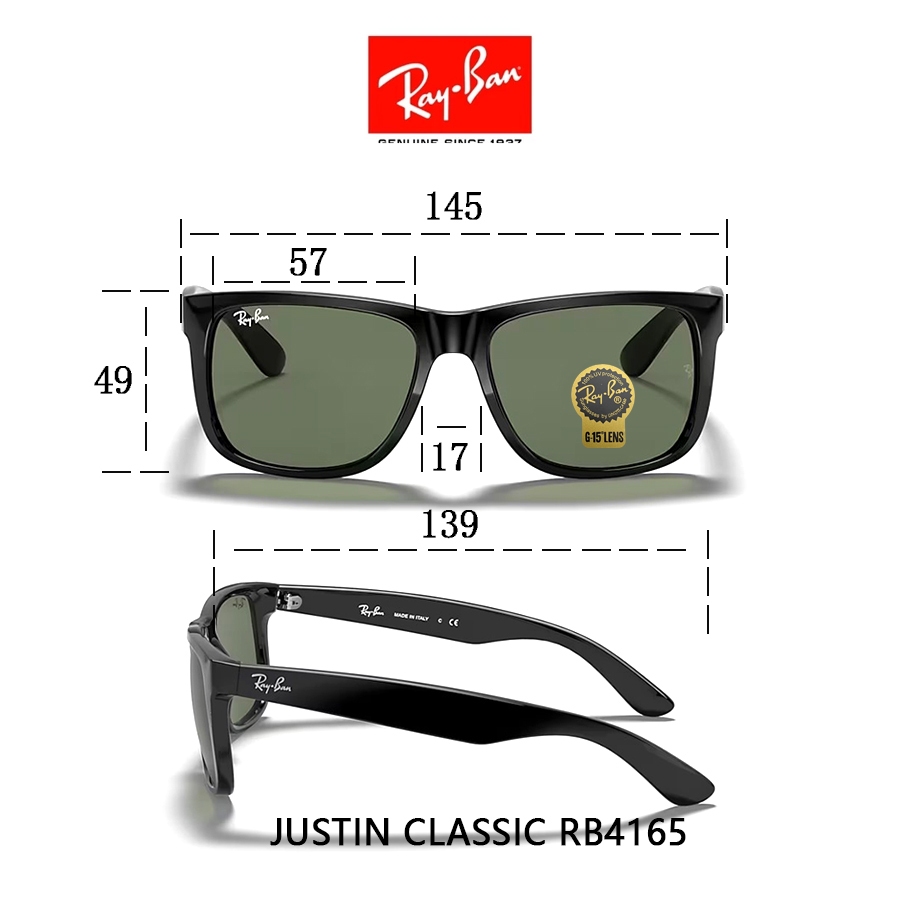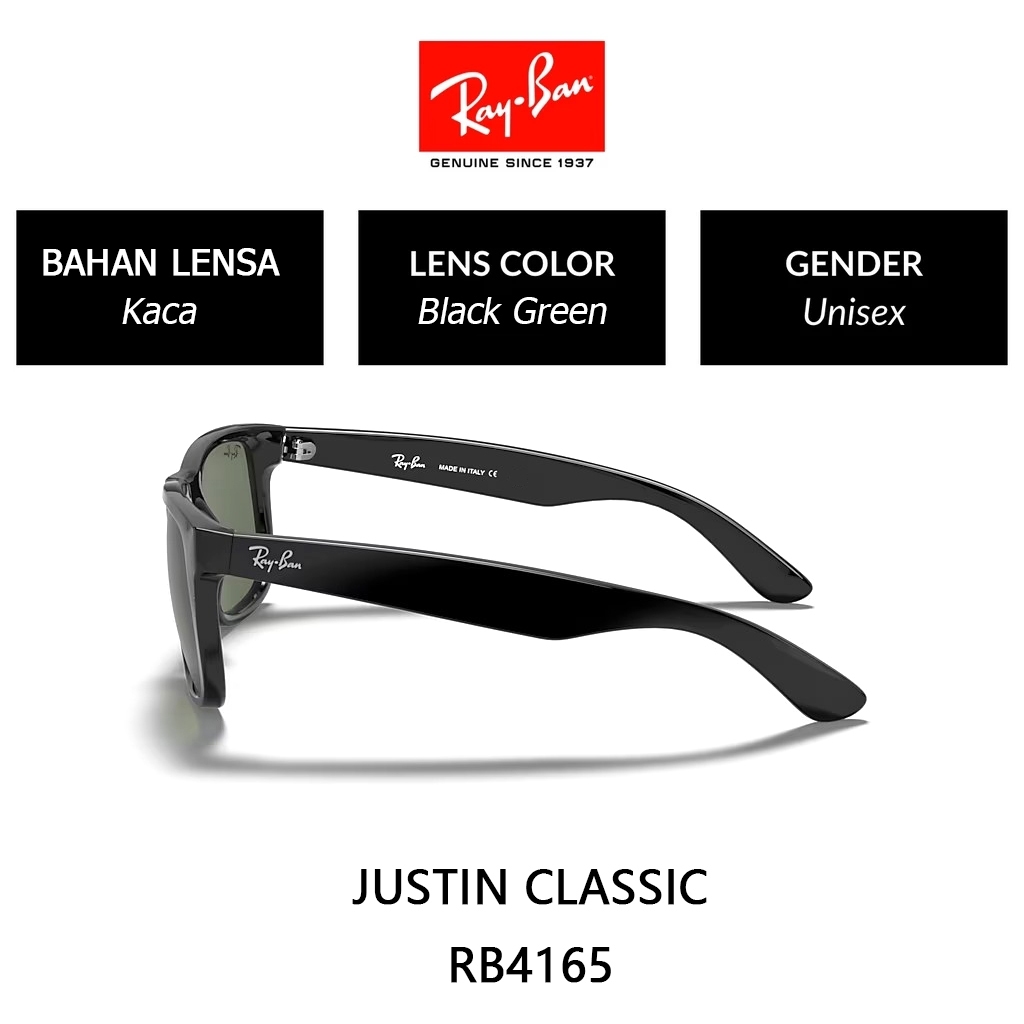 kacamata Ray-Bay Justin Original 100 PERSEN Large Metal RB4165 hitam Pria Wanita 57mm black Sunglasses