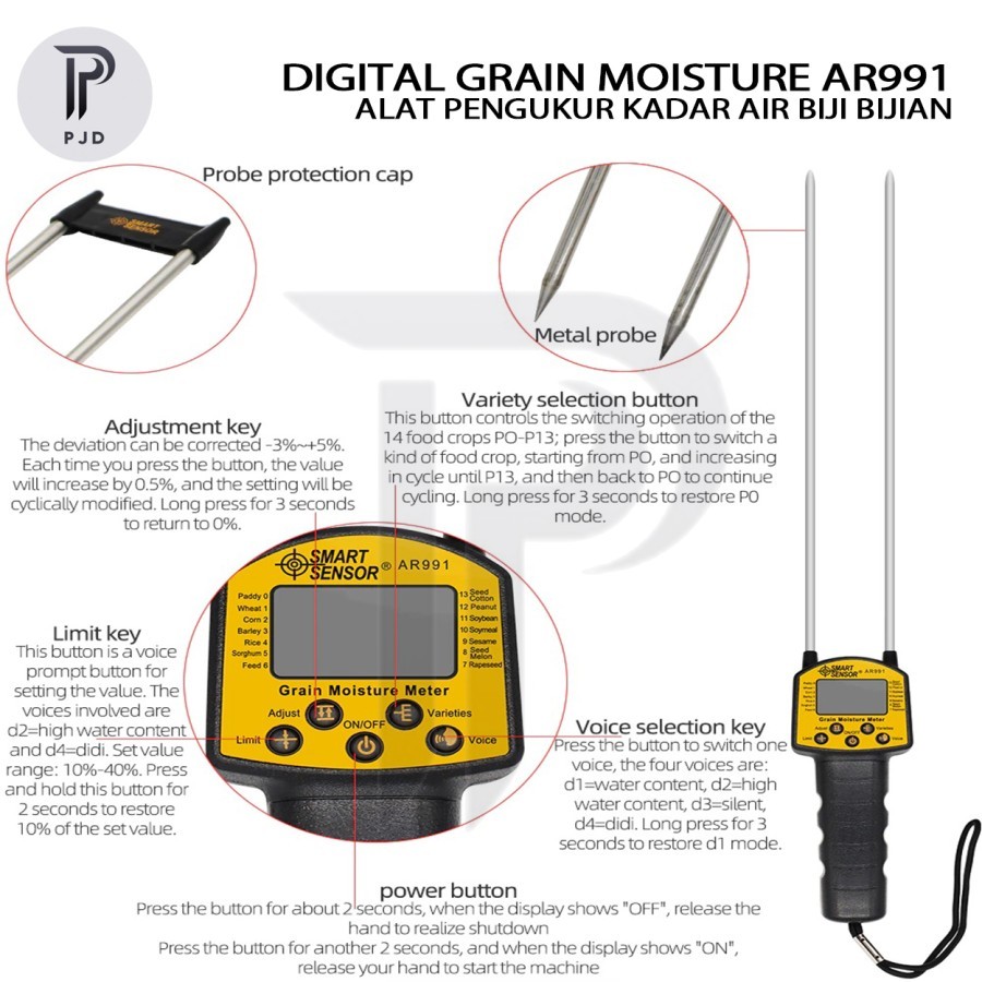 Digital Grain Moisture Meter Alat Pengukur Kadar Air Biji Bijian AR991