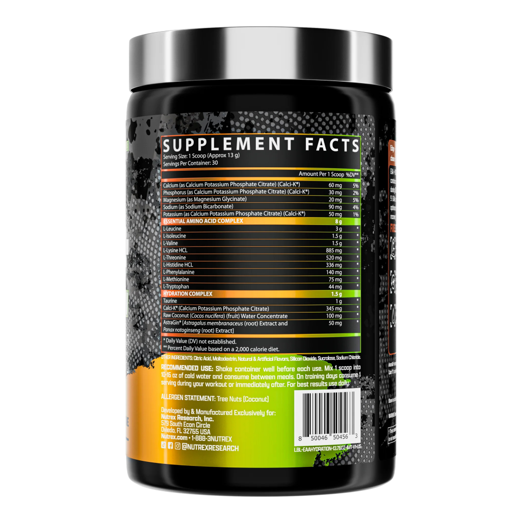 Nutrex Research EAA Hydration 30 Servings 390 Gram Electrolyte + BCAA Recovery Essential Amino Acid Pemulihan Otot