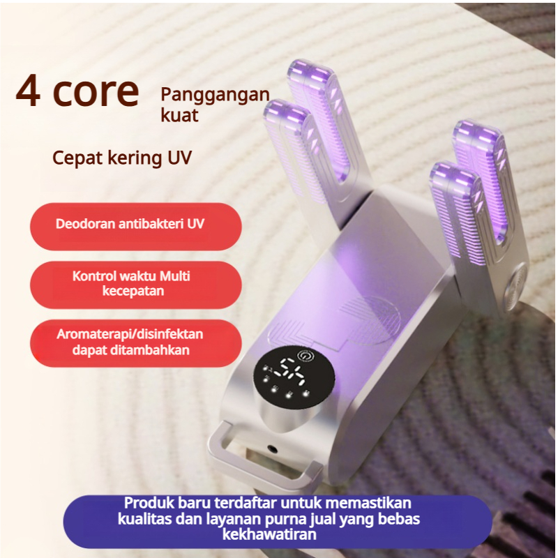 Pengering Sepatu 4 core: Kering Cepat 4 Jam dengan UV Deodorizer - Antibakteri & Hilangkan Bau untuk Pria/Wanita