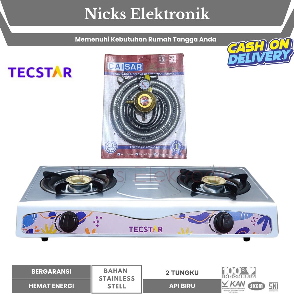 [] TECSTAR KOMPOR STAINLESS STEEL PAKET + SELANG + REGULATOR (2 TUNGKU) GARANSI RESMI