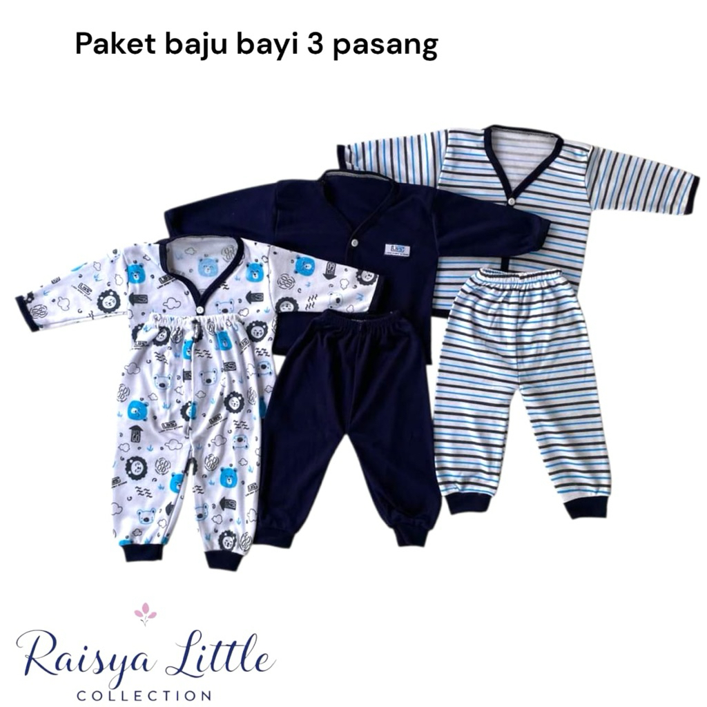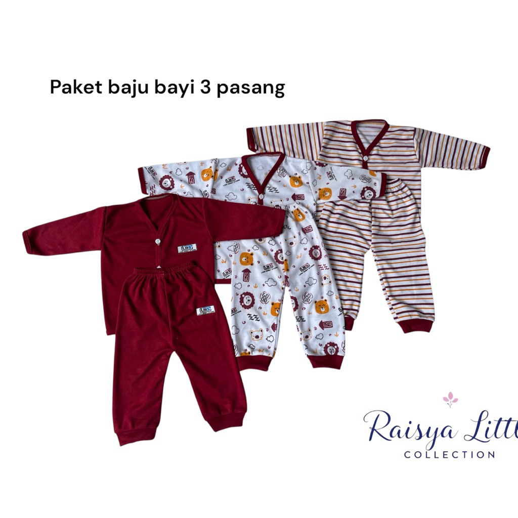 3Set/6Pcs Baju Bayi Panjang + Celana Panjang Katun Motif Hewan