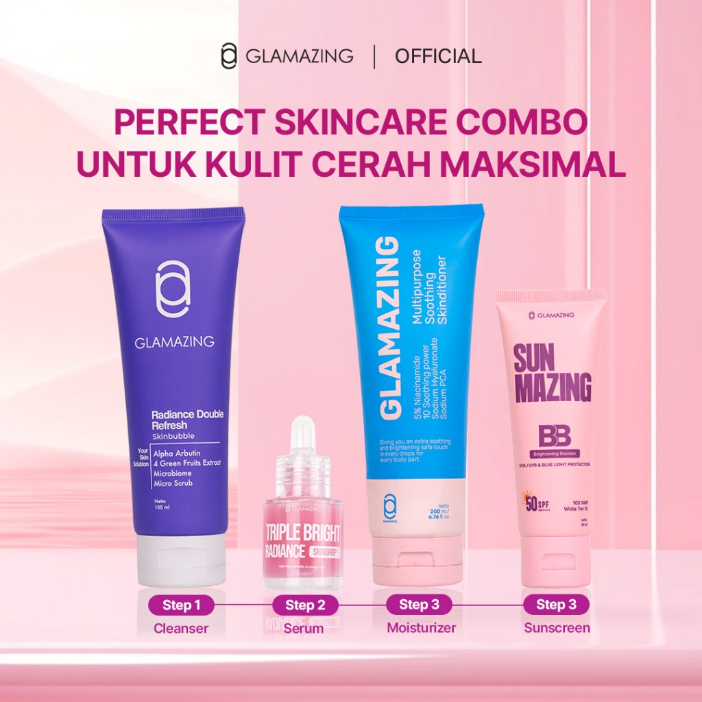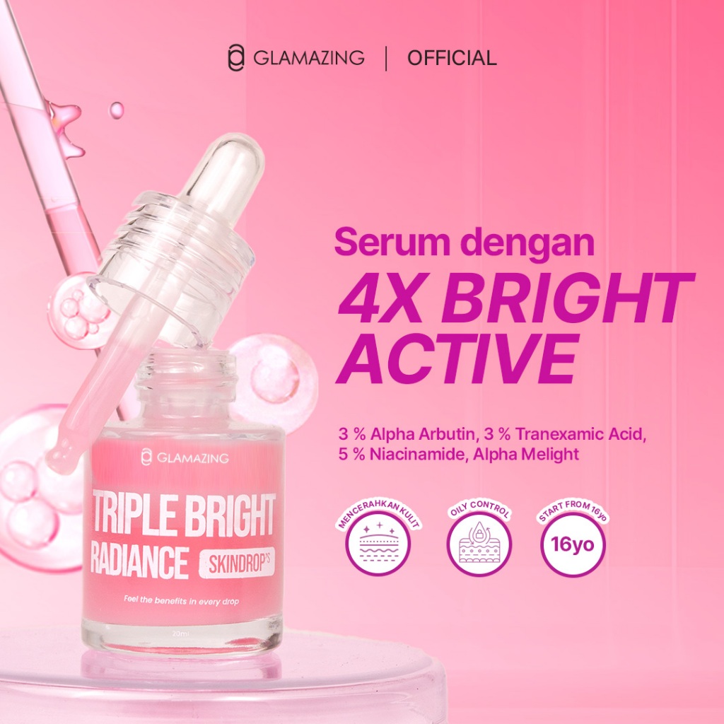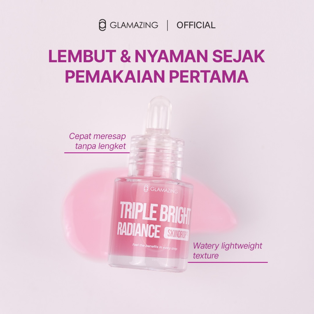 GLAMAZING - Triple Bright Radiance Skindrops - Serum Brightening & Dark Spot Solution, mengembalikan kilau alami wajah.