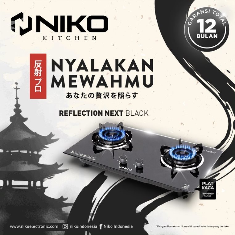 Niko Kompor Gas Tanam Kaca 3 Tungku - Pro Phantom & Next Black