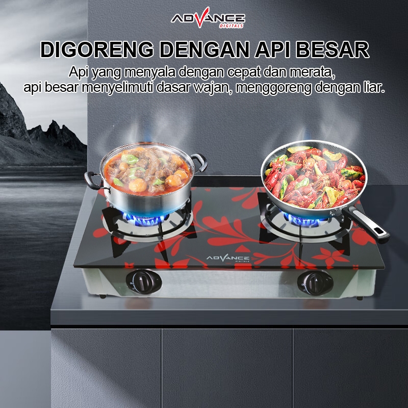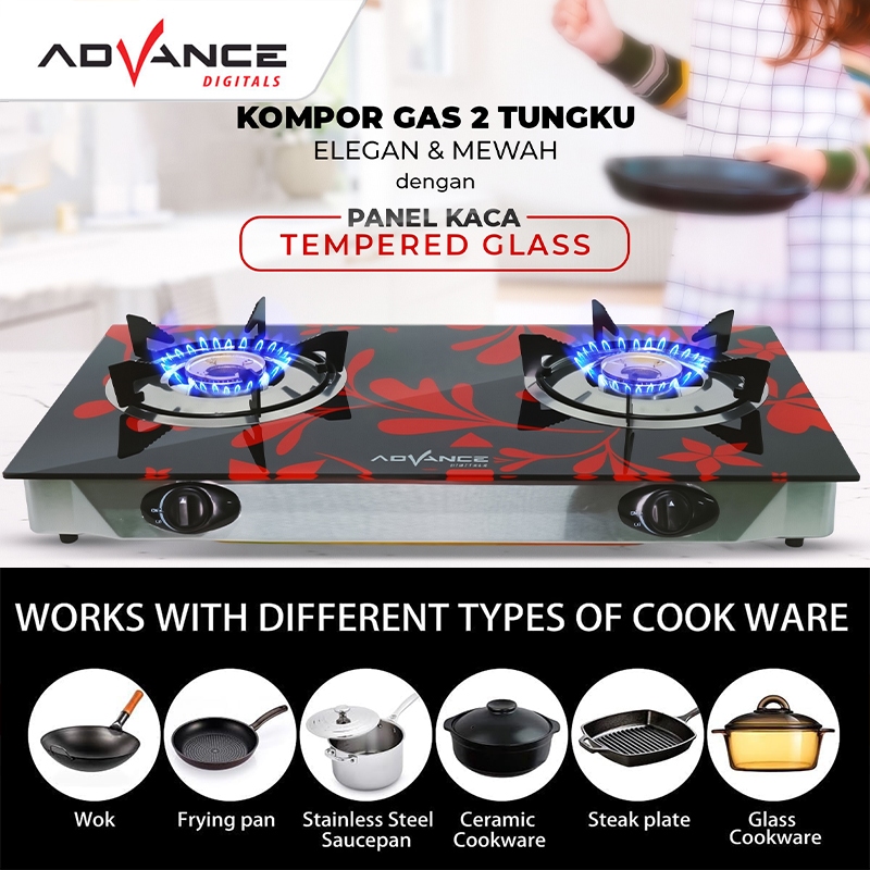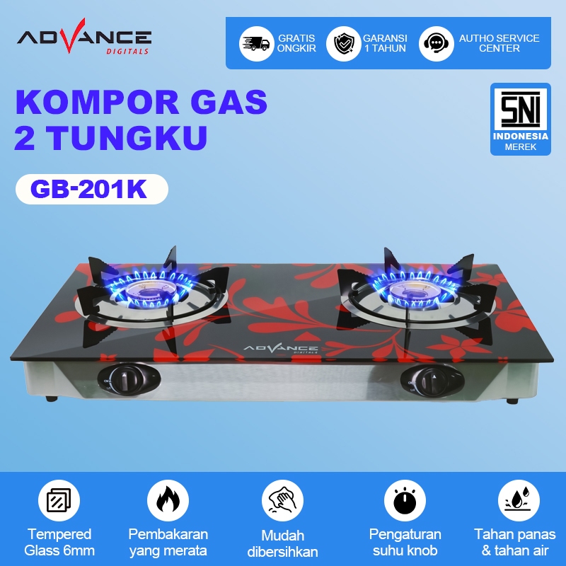 Advance GB200K / GB201K Kompor Gas Kaca / Kompor Tanam 2 Tungku Tempered Glass - FREE ONGKIR