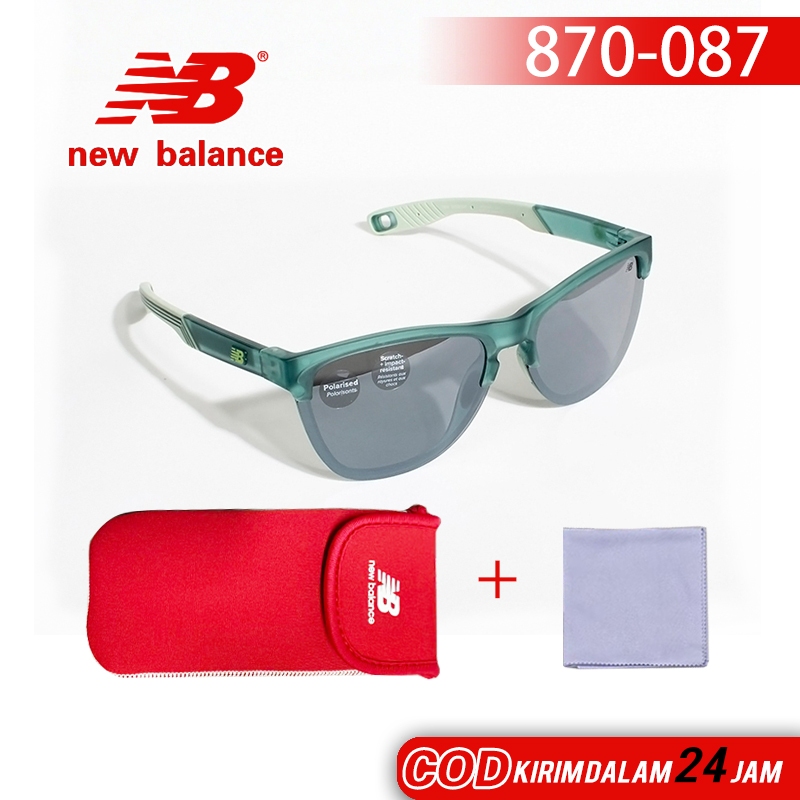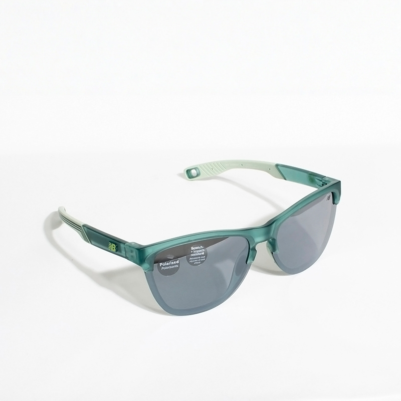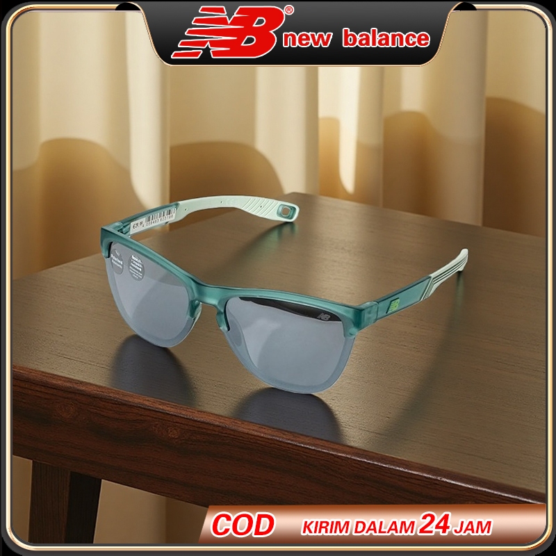 New Balance Kacamata Polarized Frame Hijau Tua Transparan Bentuk Persegi-Lingkaran Santai Lensa Abu-Abu Tua Tangan Kacam