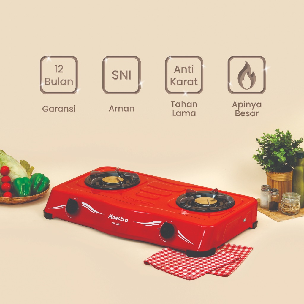 Kompor Gas 2 Tungku MAESTRO MR200, Kompor Gas Maestro Kompor Maestro Kompor 2 Tungku Peralatan Dapur