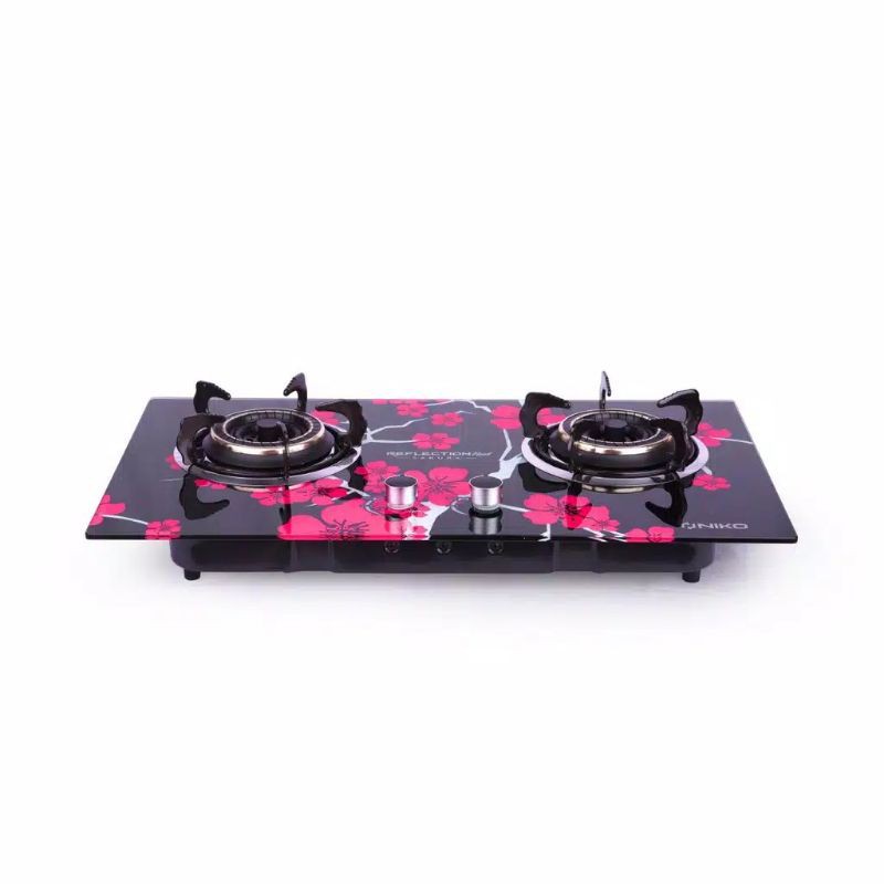 Kompor Gas Niko Reflection Tempered Glass / Stainless 2 Tungku Api Tornado Biru Tanam / Meja Garansi Resm