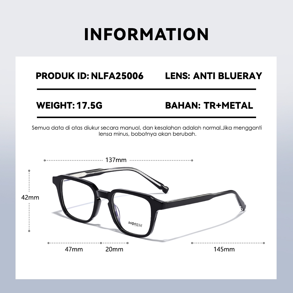 Morese Kacamata Antiradiasi Blueray Style Kotak Bahan TR90+Metal Simple Fashionable Uni Bisa Minus 25006