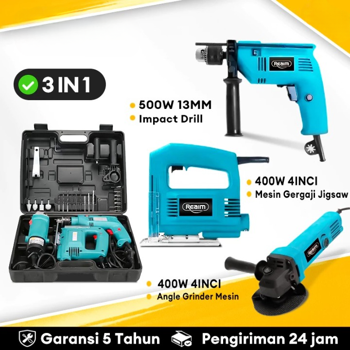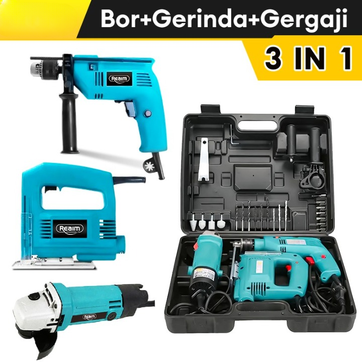 Mesin Gerinda Tangan dan 13mm Mesin Bor Listrik Angle Grinder and Impact Drill Set Power Tools