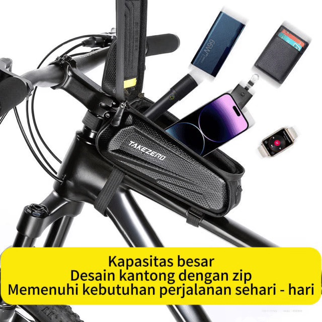 Tas Sepeda Anti Air dengan Layar Sentuh & Lubang Headset – Bisa Dipasang di Setang / Rangka Depan | Untuk HP & Aksesoris
