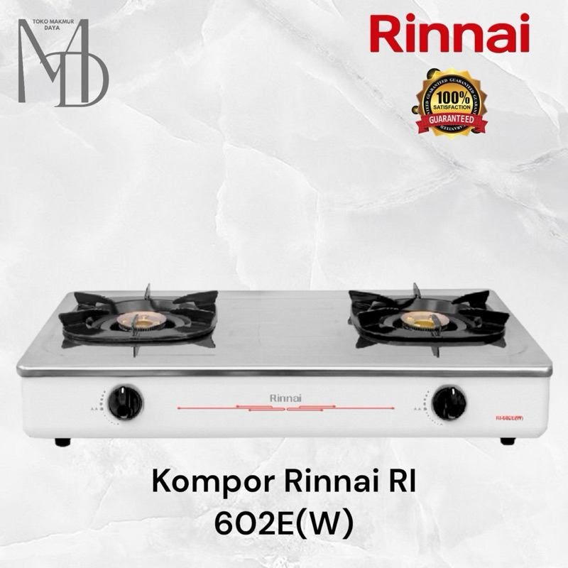 Kompor Rinnai 2 Tungku RI 602 EW / RI602E / 602EW PUTIH / RI-602E(W) Stainless Stell SNI