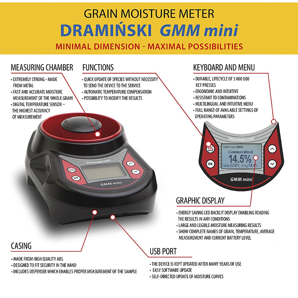 DRAMINSKI GMM MINI - Grain Moisture Meter GMM Mini Alat ukur kadar air Jagung, Kopi, dll