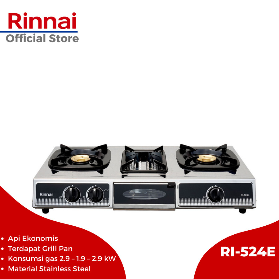 Kompor Gas 3 Tungku Rinnai RI 524 E Kompor Stainless Panggangan Rinnai 524 Kompor Panggang Rinnai RI 524E