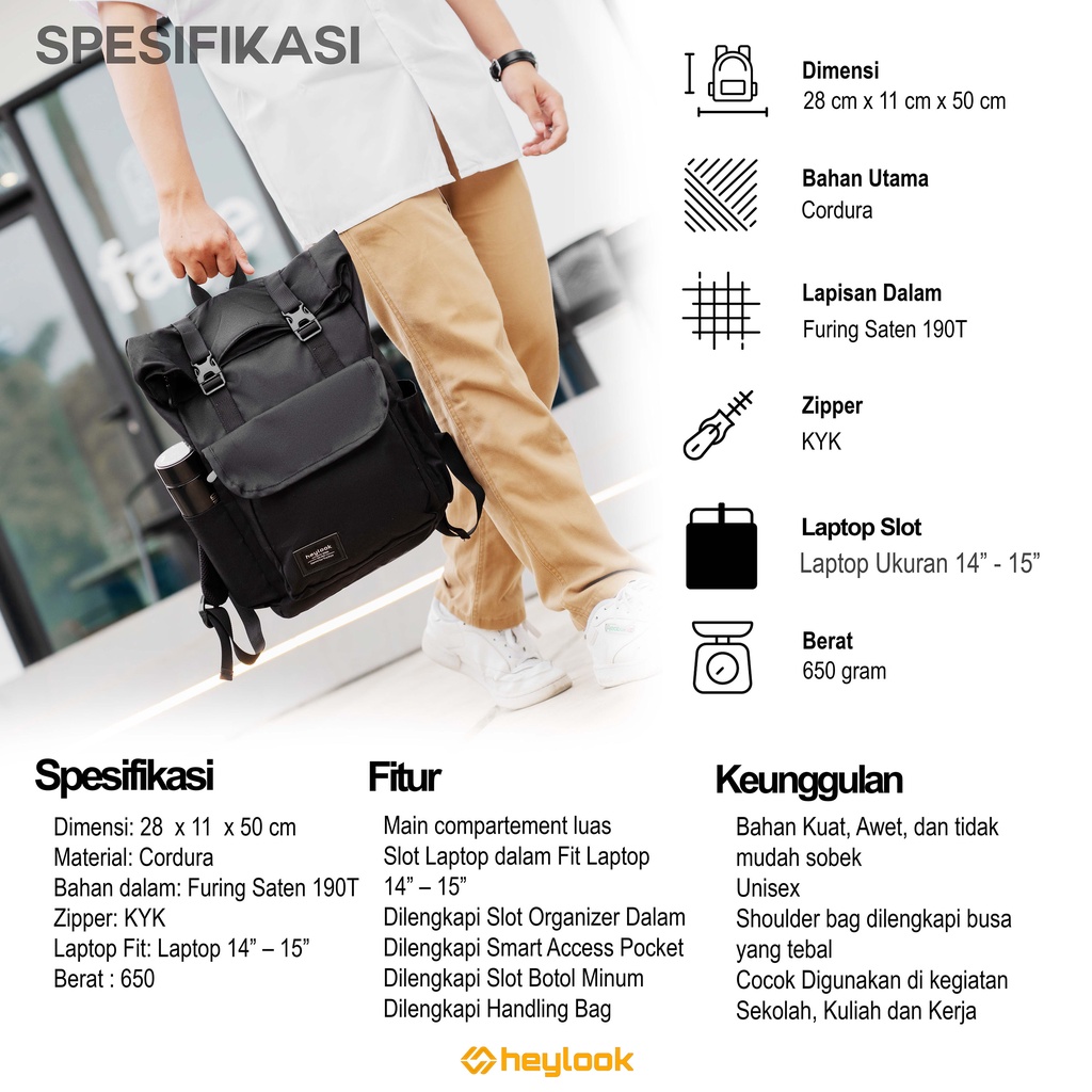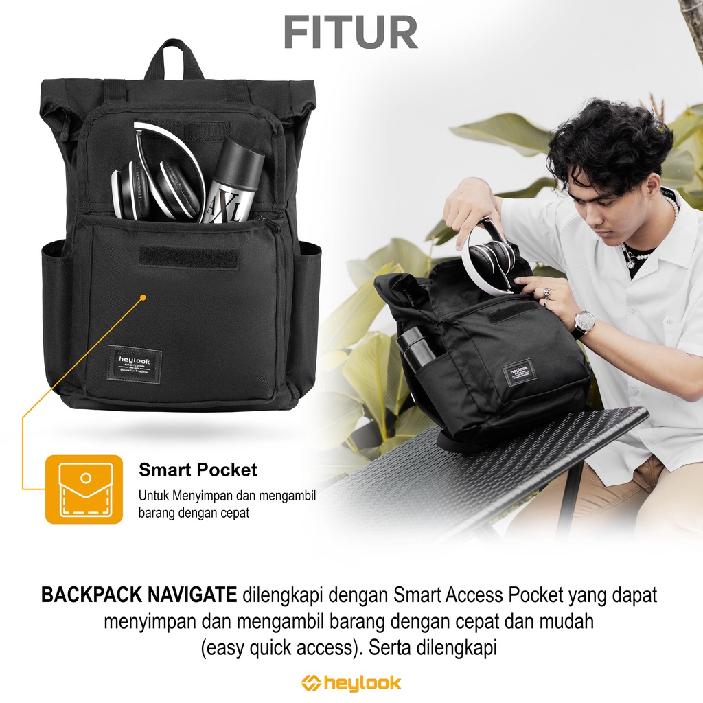 HEYLOOK Official - Tas Ransel Laptop NAVIGATE 2.0 Tas Punggung Tas Kuliah Tas Kerja Pria Tas Sekolah SD SMP SMA Laki Laki Tas Leptop Cowok Waterproof Anti Air