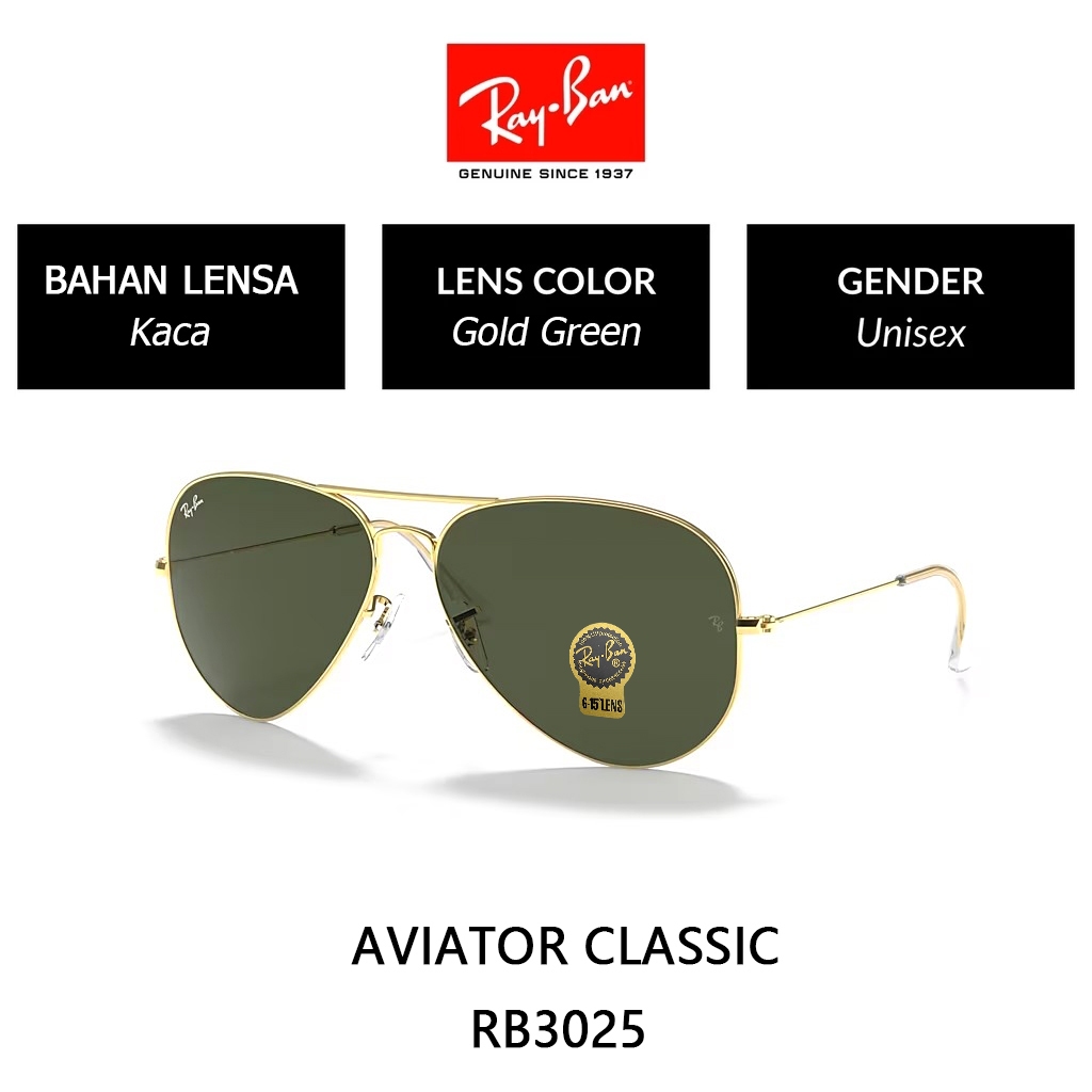 Kacamata Hitam RAY-BAN Aviator Large Metal | RB3025 | Global Fitting | Sunglasses | 58mm Black Green Original 100 PERSEN