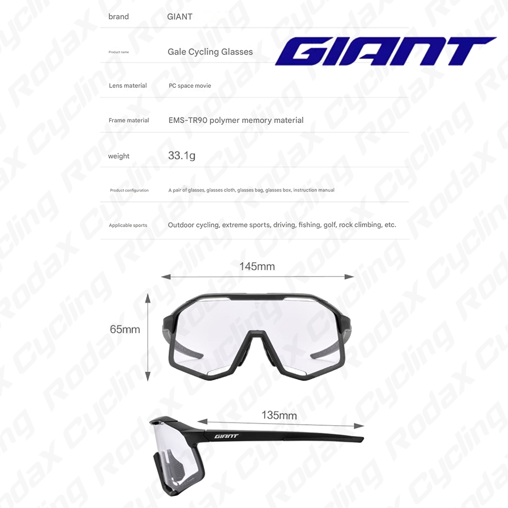 GIANT Gale Photochromic Series High-Contrast Lenses Asian-Fit Cycling Glasses TR90 Gorilla Frame Kacamata Gowes Roadbike