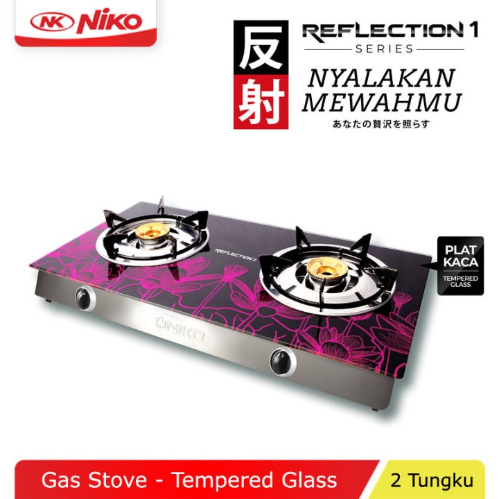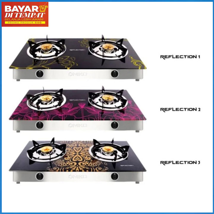Niko Kompor Gas Kaca 2 Tungku Bodi Tipis Motif Reflection 2 Minimalis TERBARU